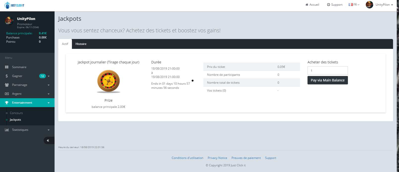 Enfin les Jackpots sont une sorte de loterie. Le site propose des loteries quotidienne et parfois hebdomadaire.